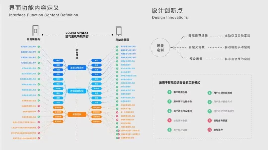 在用戶需求多元化的趨勢下,本課題以COLMO智能空調為例,從用戶定制的視角思考其界面設計,提出包括基礎功能定制、空氣管理定制、場景定制的設計策略,設計出以空調端界面為主,搭載配套APP界面的整套智能空調交互界面。