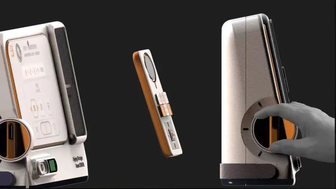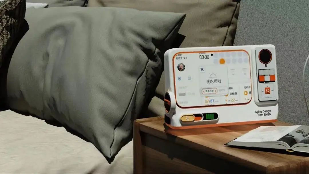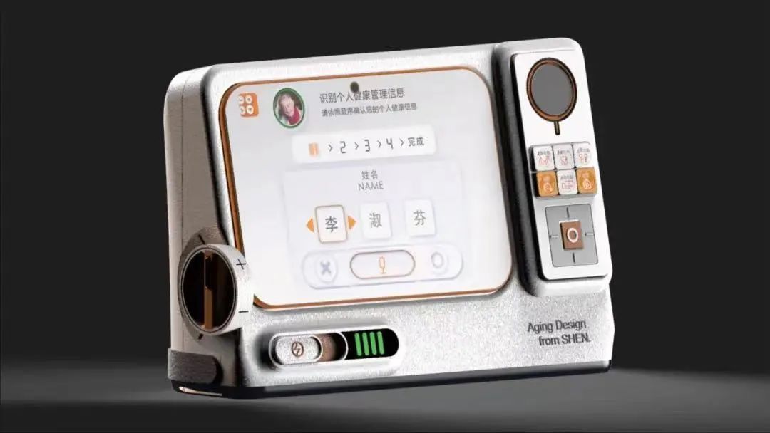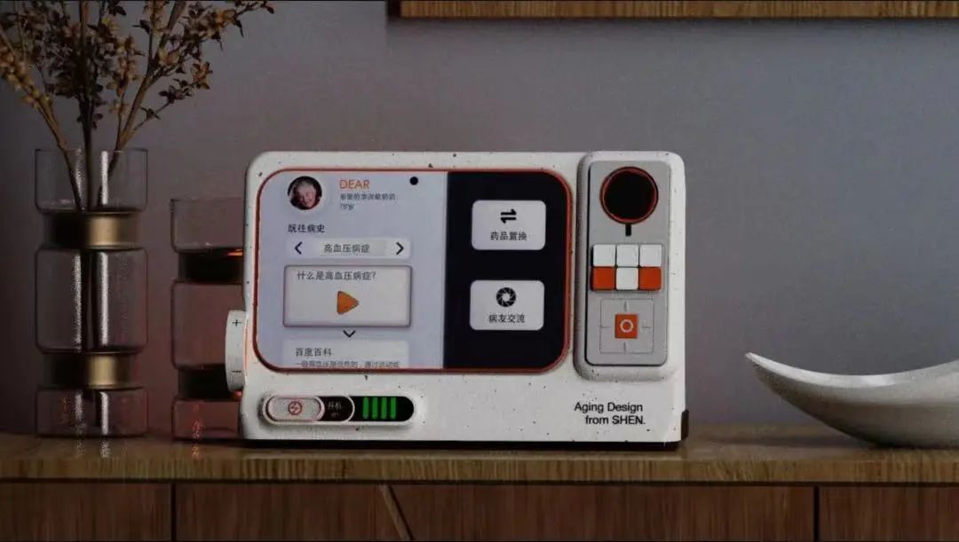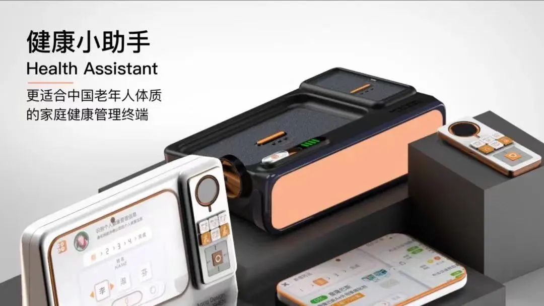 這是一款包含觸屏交互、實體按鍵交互等多種交互方式的家用智能健康管理終端,在滿足老年人藥物管理、查看可視化健康報告和病友交流等需求的同時,參照老年人的自然行為特征設計了終端外觀和界面信息展示形式,讓老年人“輕”享健康生活。