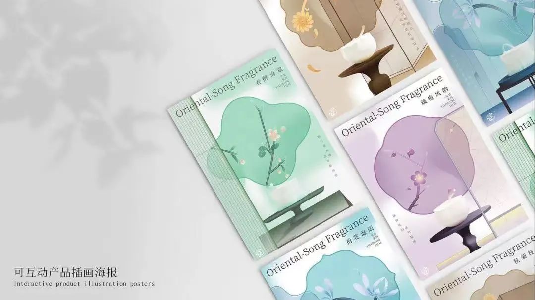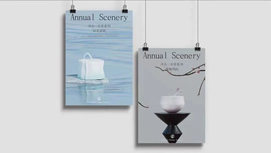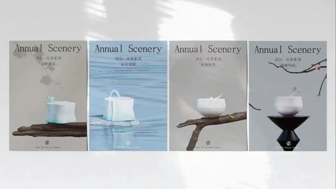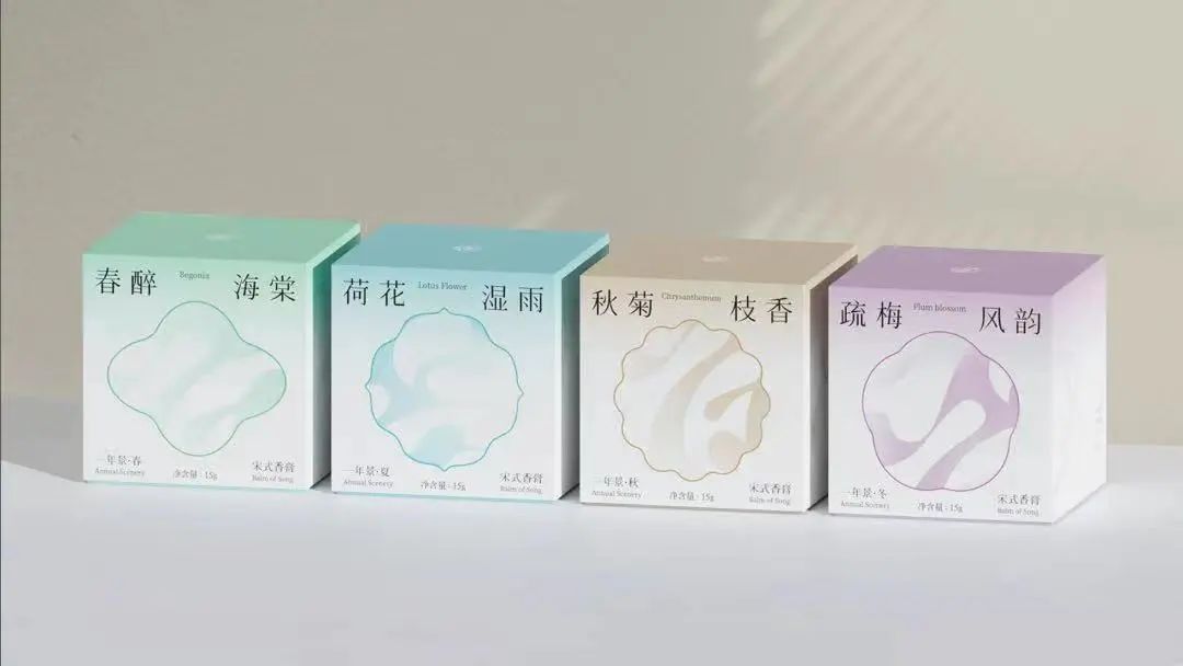 “澤和”意為將自然之潤、之美、之香融合為一。“一年景系列”是結合了四季花卉的形態特點與宋代詩詞中對于花卉的意境描寫,分別對“春醉海棠”、“荷花濕雨”、“秋菊枝香”、“疏梅風韻”四款花香香膏進行設計。