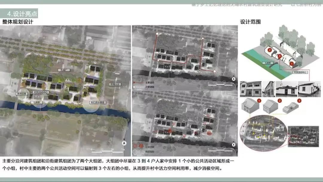 基于鄉土記憶理論研究,選取新吳區的七房橋村作為設計實踐對象,對建筑聚落空間進行優化,根據村莊自然環境和人文環境特色,針對不同年代特點的居住建筑,對其建筑空間、建筑外立面進行鄉土特色重塑和優化改造設計。