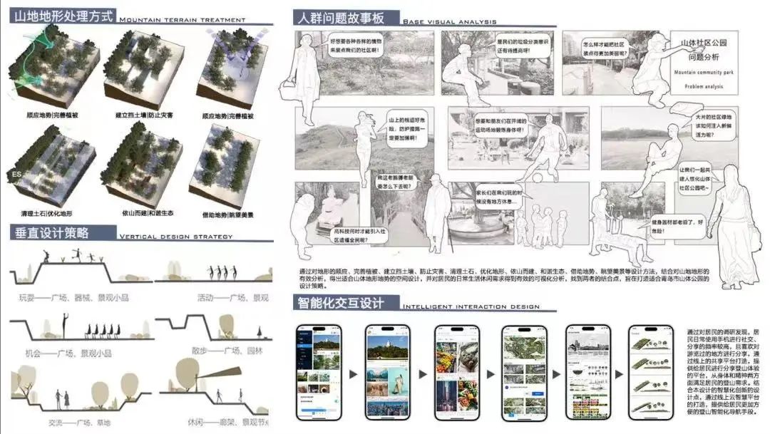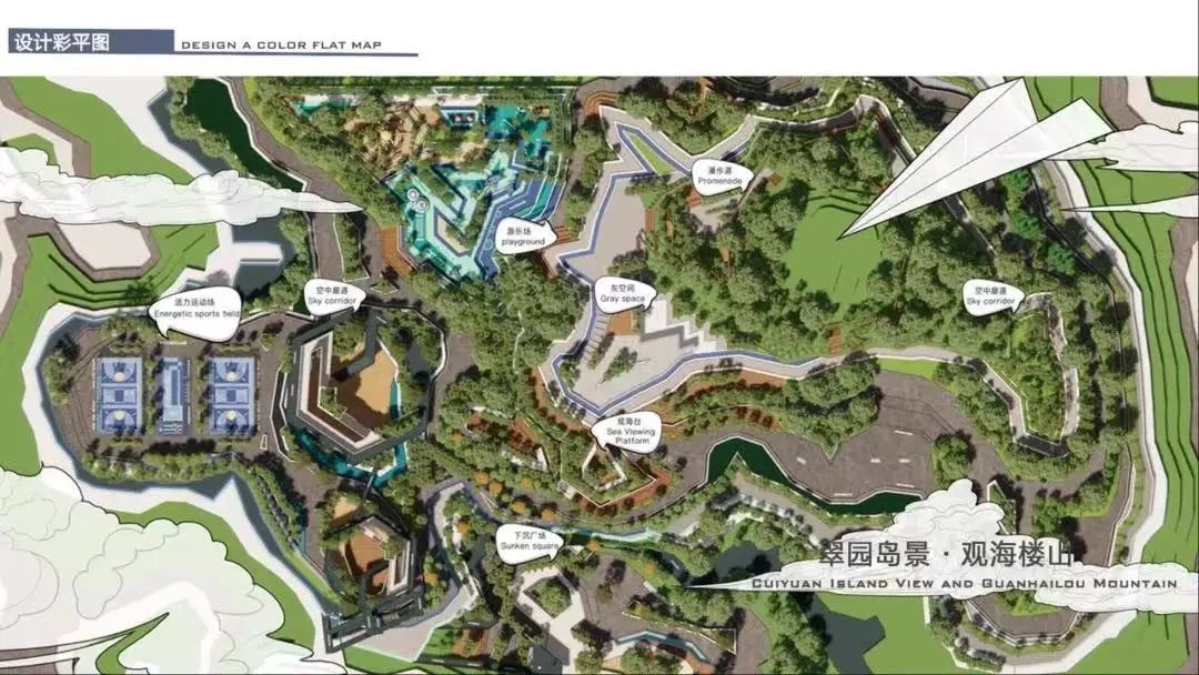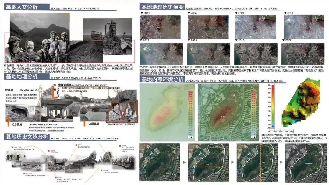 本設計選址位于青島市李滄區樓山公園,公園遙望青島市內海灣,通過加入《社區營造》的概念,設計有六大主節點與兩大輔節點,使用兩條游山道路進行串聯,旨在打造適合青島市人民日常生活娛樂休閑靜養的山體社區公園