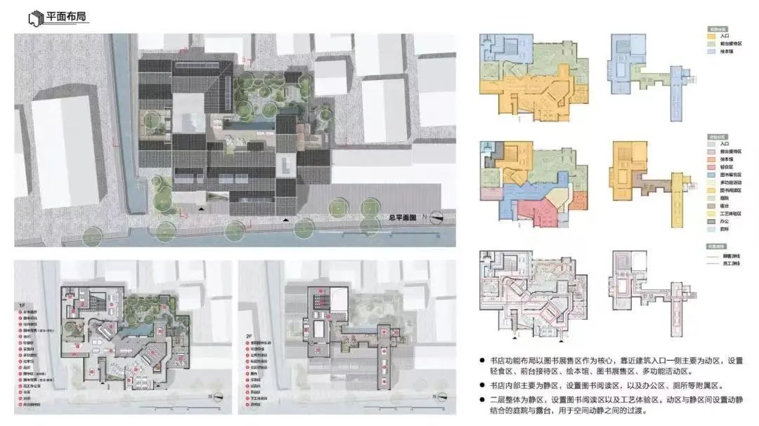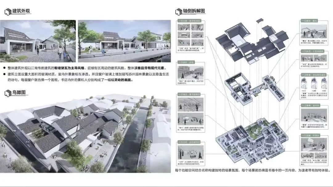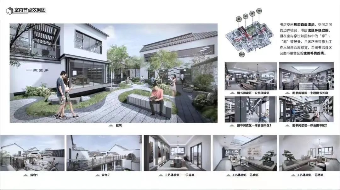 本項目是基于新零售概念打造的一座蘇州園林主題的實體書店,整體的設計策略在于“組織以書為主的多元功能業態,營造蘇州園林主題的空間氛圍,構建線上線下一體化的運營模式。”同時項目立足于蘇州園林所蘊含的隱逸山水而悠然自得的理想生活向往,將書店命名為“一頁山水”,其中亦包含著項目的設計理念——期望每個人都能在咫尺天地間尋找到自己理想的文化生活方式。