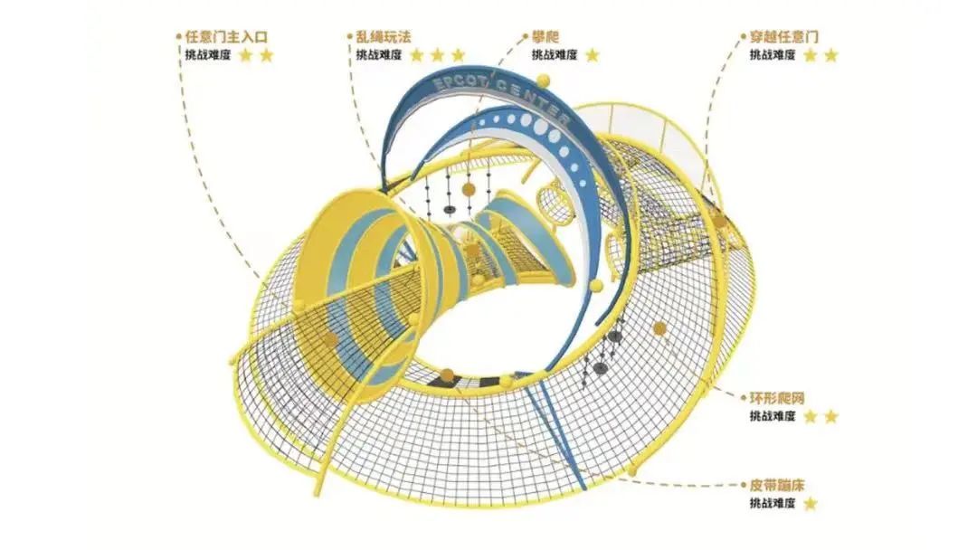 筆者于2022年6月加入奧雅股份上海公司洛嘉兒童部門,立足實際項目---奧雅股份·洛嘉“招商武漢城建未來中心兒童樂園”。項目位于武漢經開區,面積約2000平方米。在此項目中,作者深度參與設計概念與創意,主要負責園區主設備造型設計及建模,設施群之間玩法與動線設計,施工階段的技術對接和落地性推敲,后期運營維護手冊編寫,畢設所展示的相關資料已于2022年11月11日獲得奧雅上海洛嘉部門該項目第一作者兼項目負責人(時任)的認可及授權。在具體故事表達上,化用了物理學中關于翹曲空間(空間折疊)、黑洞、原子核結構為元素,將“快速拉近距離,到達任何地方”的意象融入設計中,以充滿新奇和歡樂的多感官氛圍模糊空間的一些限制,通過引導性的動線讓兒童穿梭“任意門”,短暫地從現實中抽身,在奇幻冒險的世界里度過無憂無慮的時光。