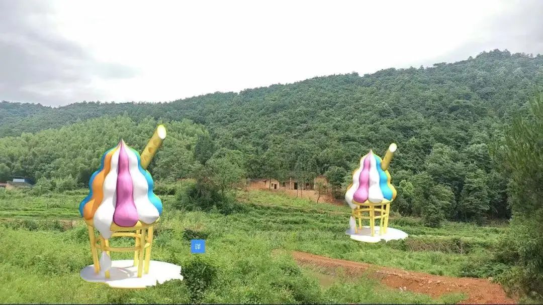 本次公共藝術實踐活動地點為黃龍村,依托鄉村學校開展主題為“怎樣規劃自己的鄉村”的文化研學活動,孩子們在教室里充分發揮自己的奇思妙想,勾畫自己理想的鄉村圖景。中期階段,記錄下村民對黃龍村許愿祝福的過程,收集村民愿望并落地完成作品《101個愿望》,在鄉村實踐的后期階段,選擇孩子們的畫進行落地實現,并在村莊選取三個標志點進行創作。