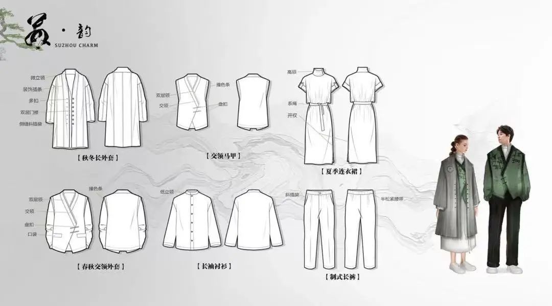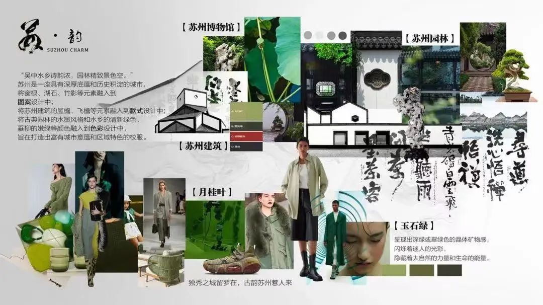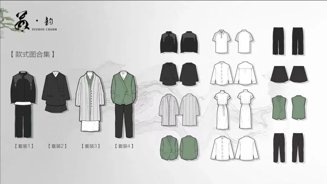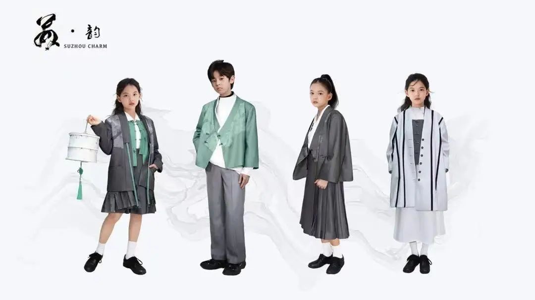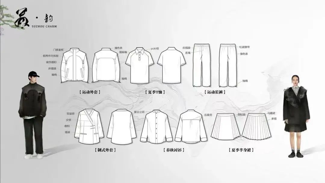 蘇州是一座具有深厚底蘊和歷史積淀的城市,將窗欞、湖石、竹影元素融入圖案設計;將屋檐、飛檐等建筑元素融入款式設計;將古典園林的水墨風格和水鄉清新綠色等融入色彩設計,旨在打造富有城市意蘊和區域特色的校服。