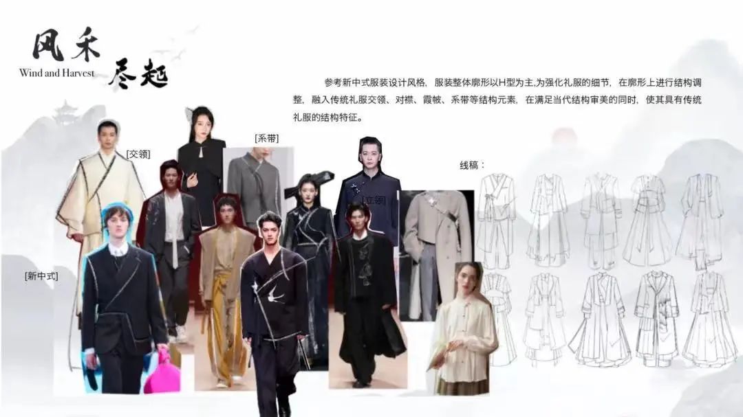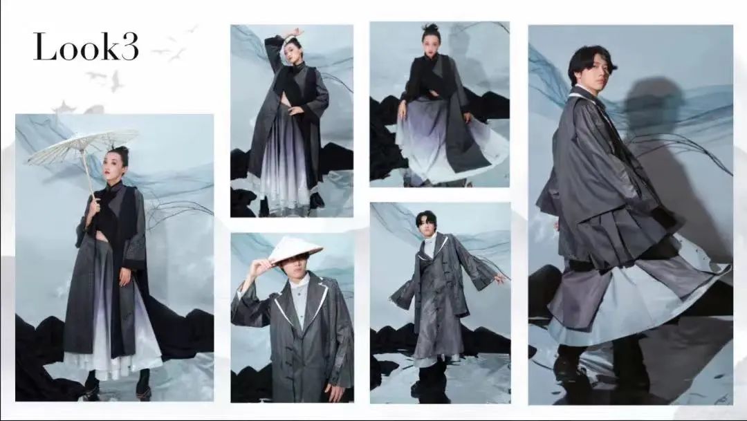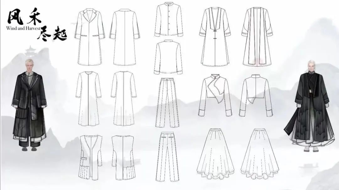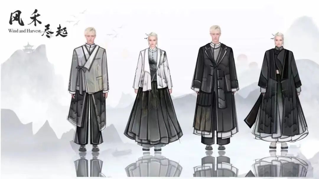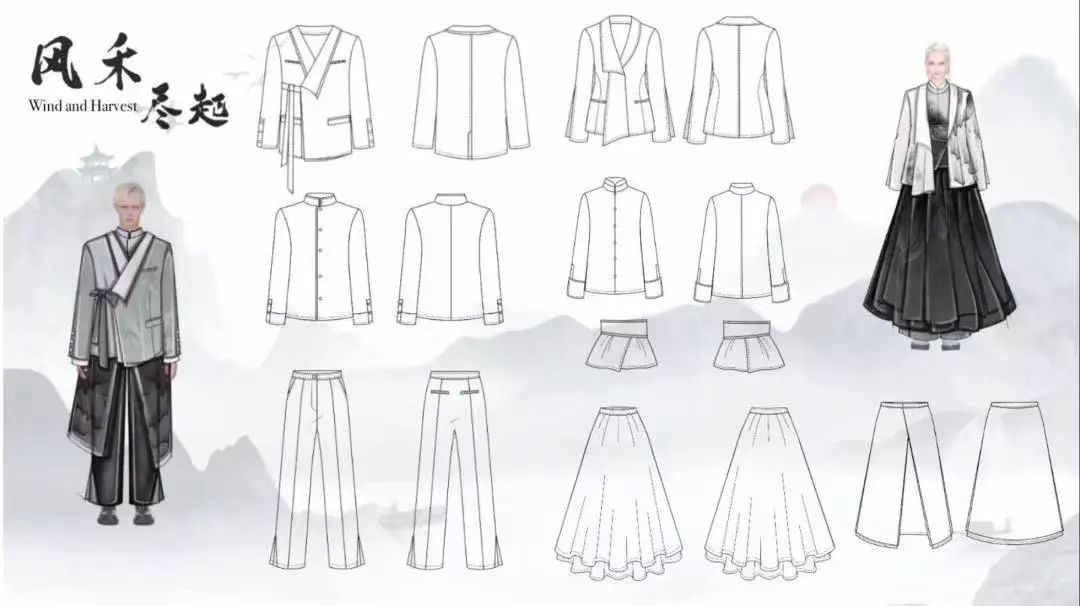 主題名來源于《書·金縢》,“灼灼韶華,風禾盡起”常用于形容一個人從孩童蛻變至成熟的模樣。意指美好的年華,未來一切都不確定只要順應自然和本心,就能得到天助,創造出屬于自己的美好未來。以此作為成人禮服飾主題,希望穿著者皆能擁有沒有未來。該系列色彩上采用經典黑白灰色調,寓意青少年成年后能都低調沉穩、剛正;款式上借鑒當下流行的新中式風格,融入傳統冠笄禮服飾元素,符合當下審美,能夠打造適合當代的漢族成人禮服飾。