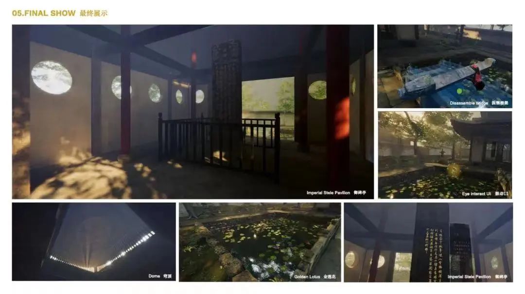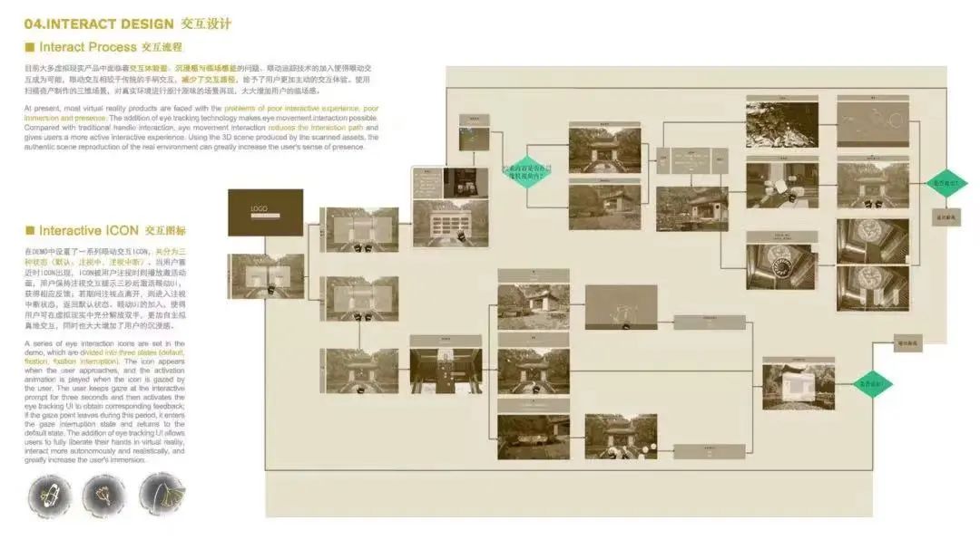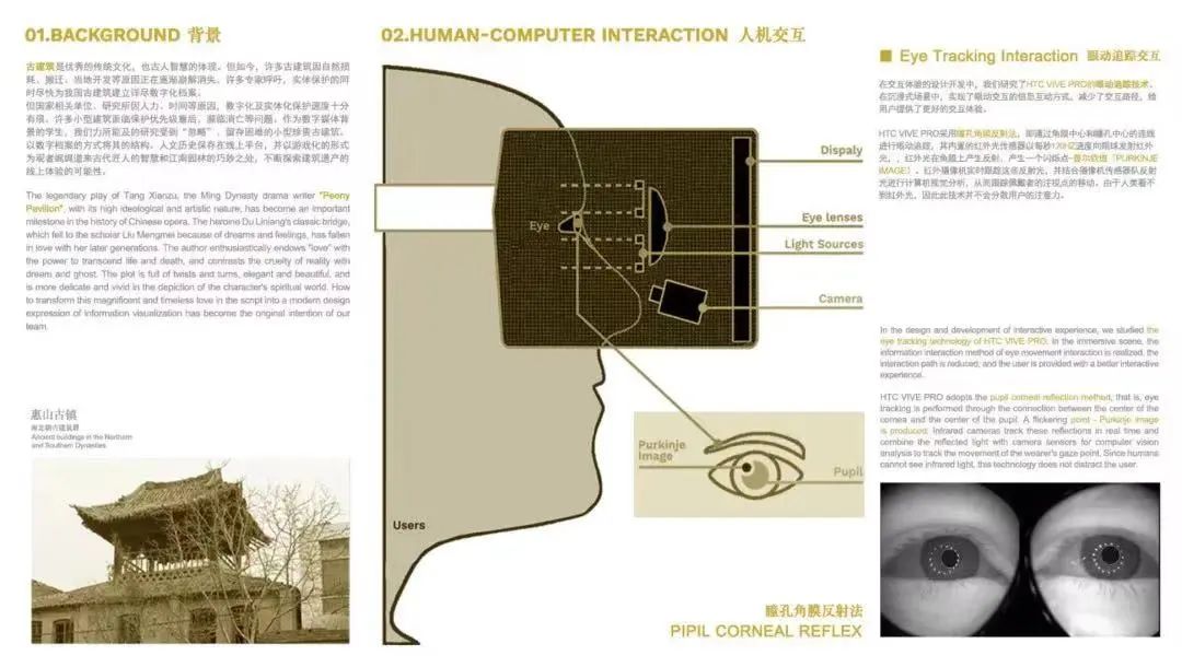 本作品是一個基于眼動交互的建筑遺產VR作品,其側重于將最新的眼動交互技術應用于建筑遺產的沉浸式體驗。在交互體驗的設計開發中,研究了HTC VIVE PRO的眼動追蹤技術。在沉浸式場景中實現了眼動交互的信息互動方式,減少了交互路徑,給用戶提供了更好的交互體驗。